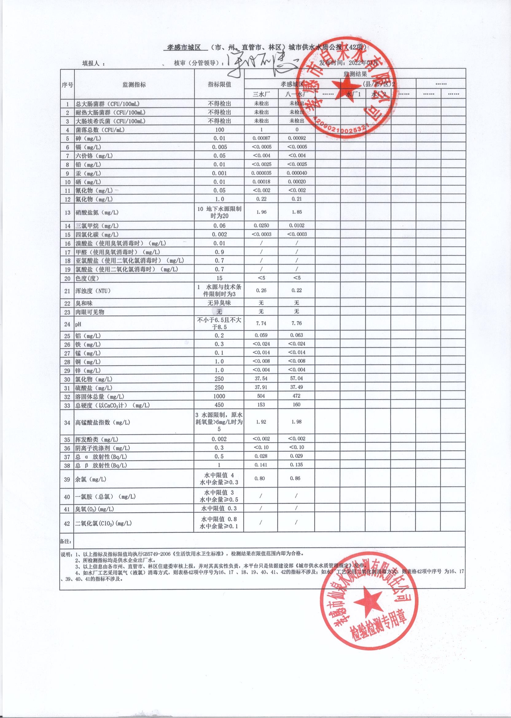 2022年1月水質(zhì)報告
