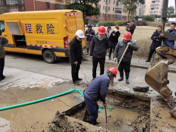 電話掛下,涂明海立即將該情況上報給公司值班經(jīng)理李錦林,雖然該問題屬于小區(qū)內(nèi)部管網(wǎng),但考慮到當天正值除夕,家家戶戶都需要準備年夜飯,此時停水將對用戶造成巨大的影響,李經(jīng)理當即決定啟動應(yīng)急機制。9點05分,在接到客戶電話的十分鐘內(nèi),公司迅速安排供水搶修隊伍到達現(xiàn)場。通過搶修人員的現(xiàn)場查勘,發(fā)現(xiàn)此次爆管原因是該處DN160管子哈夫節(jié)漏水,且此處管網(wǎng)較深,需臨時調(diào)挖掘機到現(xiàn)場作業(yè)。經(jīng)過了4個小時的搶修,下午2點,該小區(qū)恢復(fù)了正常供水。
