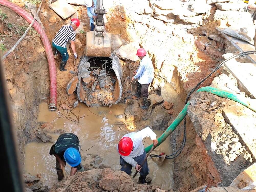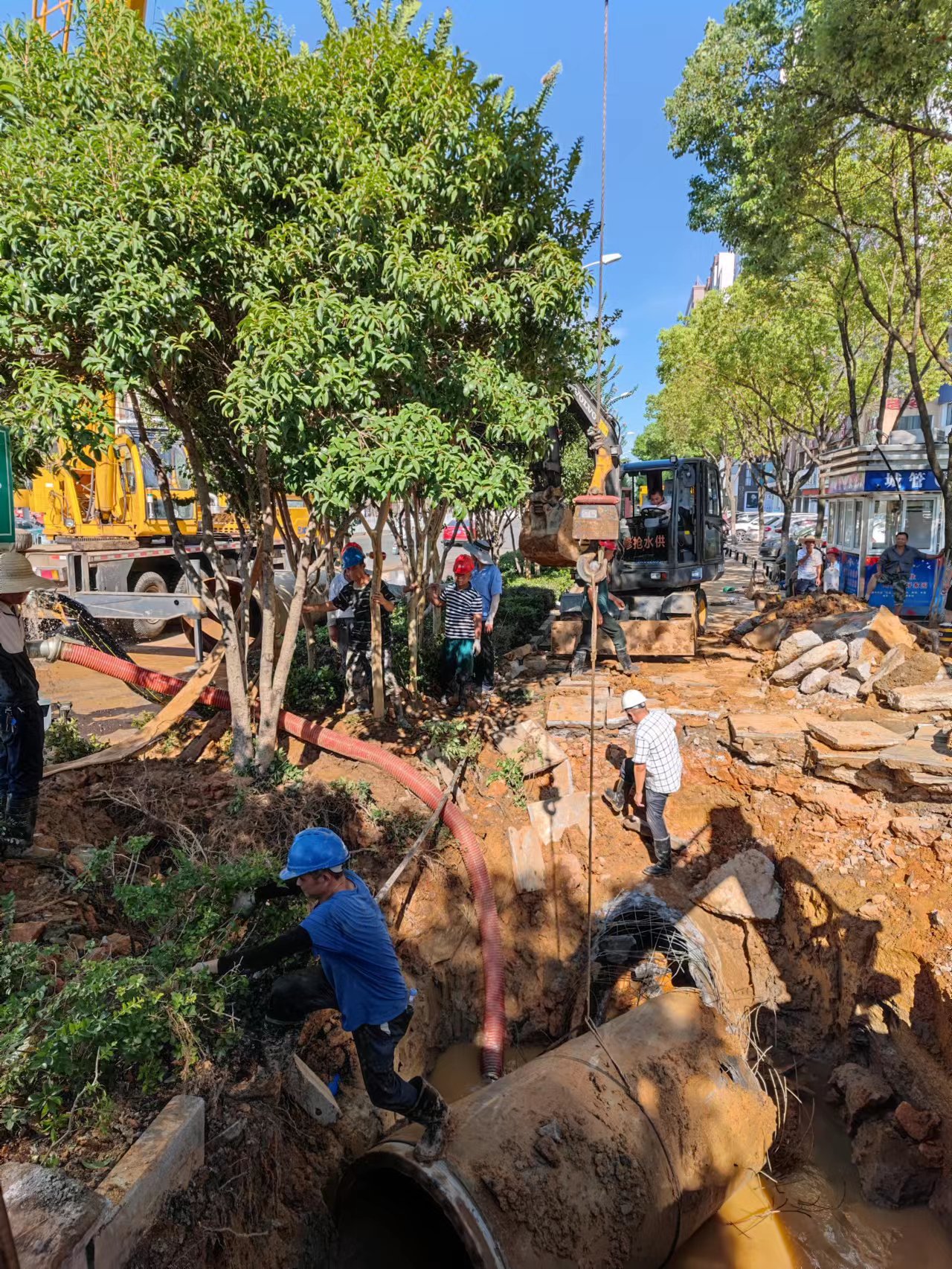 此次爆管口徑大,積水多,并且事發地位于交通主干道,周圍環境復雜,給協調開挖和排漬工作帶來不小困難。