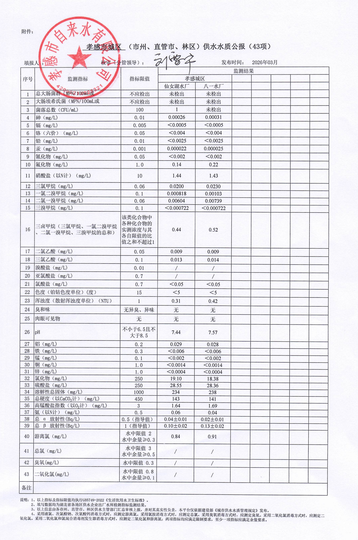 2026年3月水質(zhì)報(bào)告